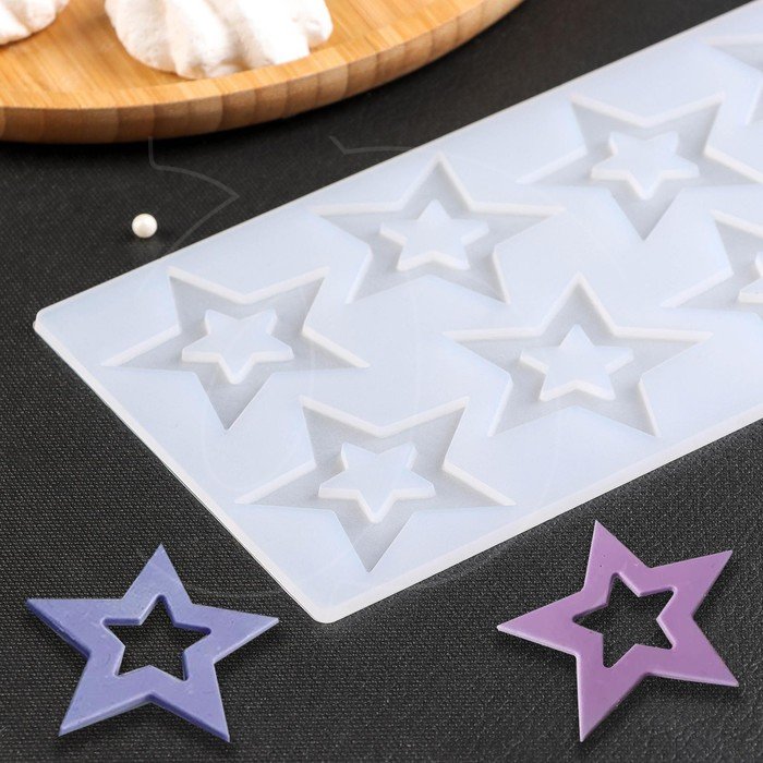 Форма из плотного силикона, звёздочки из неё хорошо достаются, не ломаются. Получаются очень красивыми, отличное дополнение декора.