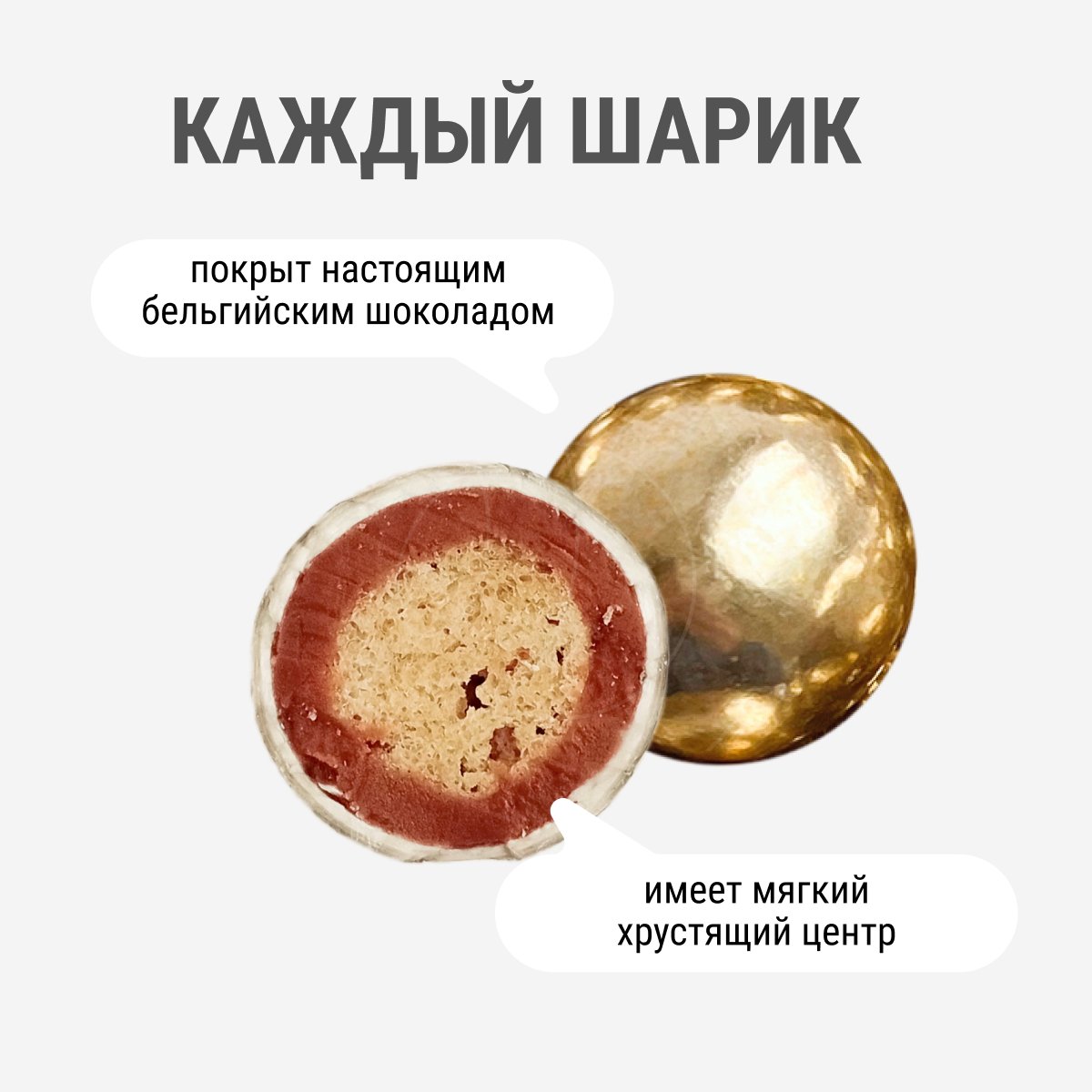 У шариков хрустящий центр из рисовой и пшеничной муки.