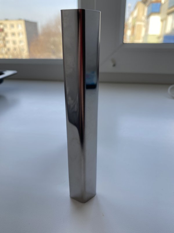 Шпатель очень качественный, металл прочный (как у колец для выпечки данного бренда). Единственный минус - это неровное основание ручки. Это видно на фото, где я сверху придерживаю пальцем. Если выравнивать торт правой рукой и поставить шпатель на стол, то он упадёт. Другой стороны край ровный. Данный нюанс не отражается при работе с тортом, но стоит привыкнуть(