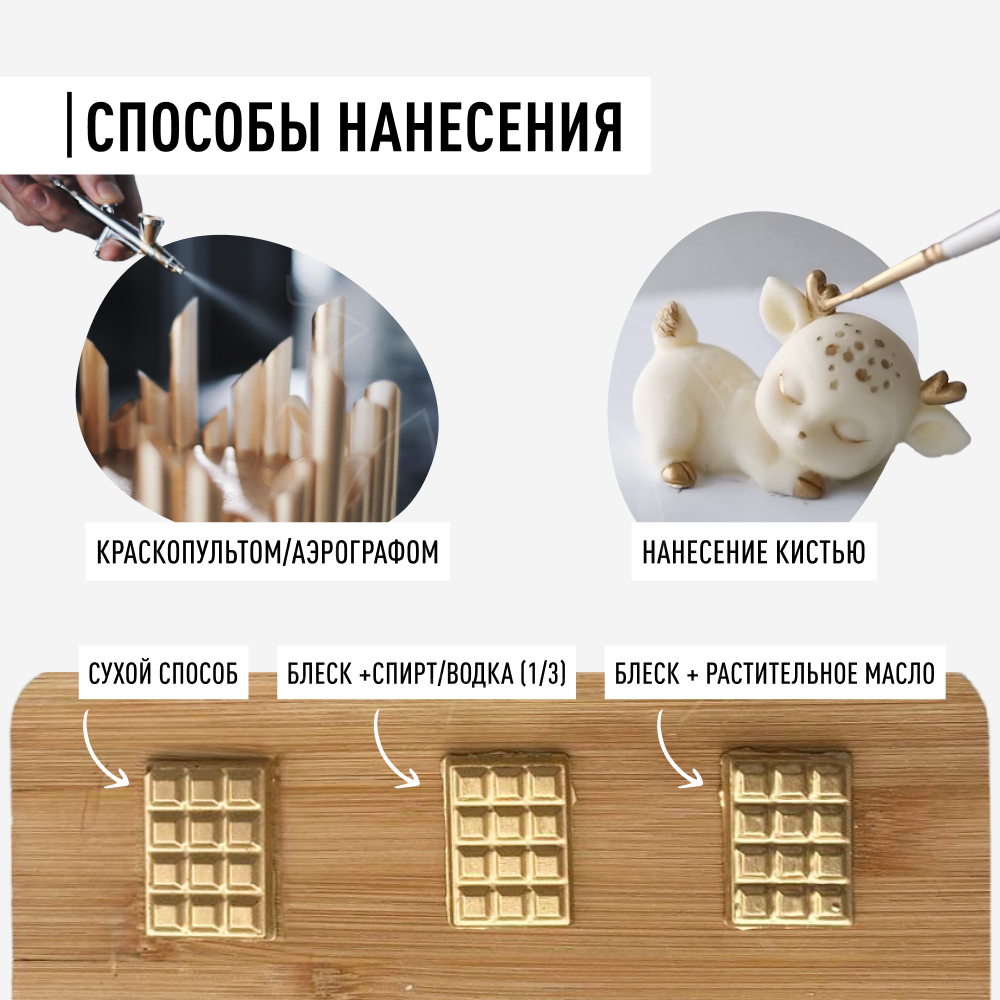 Идеальная находка для меня. Мега мелкая дисперсия, отлично подошел для аэрографа, а если понимать какое мелкое сопло у аэрографа. Идеальное нанесение, никаких проплешин не оставляет, очень маленький расход, что является еще одним плюсом. Прекрасно подошел как для покрытия пряников, так и для мастики и шоколада. Не зря так и назвали «Идеальное» в этом блеске все идеальное. До этого использовал тоже наш отечественный блеск, и сколько было мучений, особенно с аэрографом. А с этим блеском я даже не разбираю его, всего лишь мою под проточной водой.
