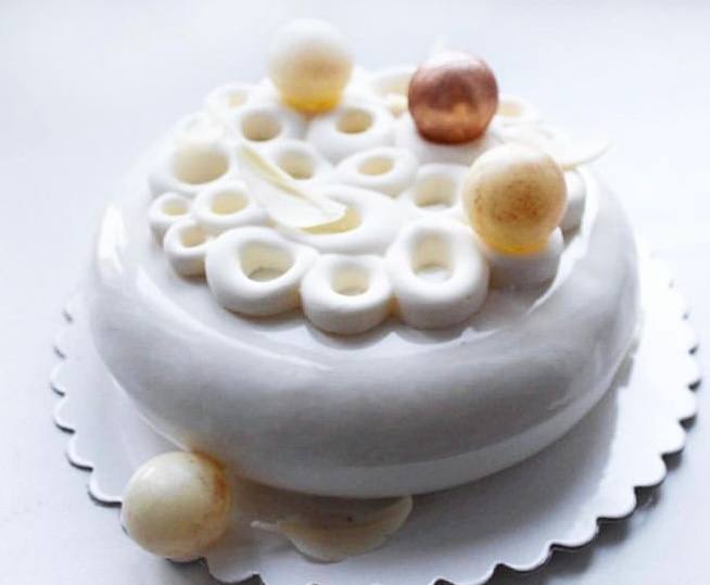 Белый шоколад в заводской упаковке, в форме маленьких белых каллет. По вкусу очень приятный, не приторно сладкий. Хорошо топится как в микроволновке, так и на водяной бане, без проблем темперируется при помощи микрио. Отлично подходит для муссовых тортов, шоколадных плиток, трюфелей, сфер и ганаша.