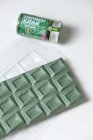 В корпусных конфетах при работе с хлорофилом отметила для себя следующее: