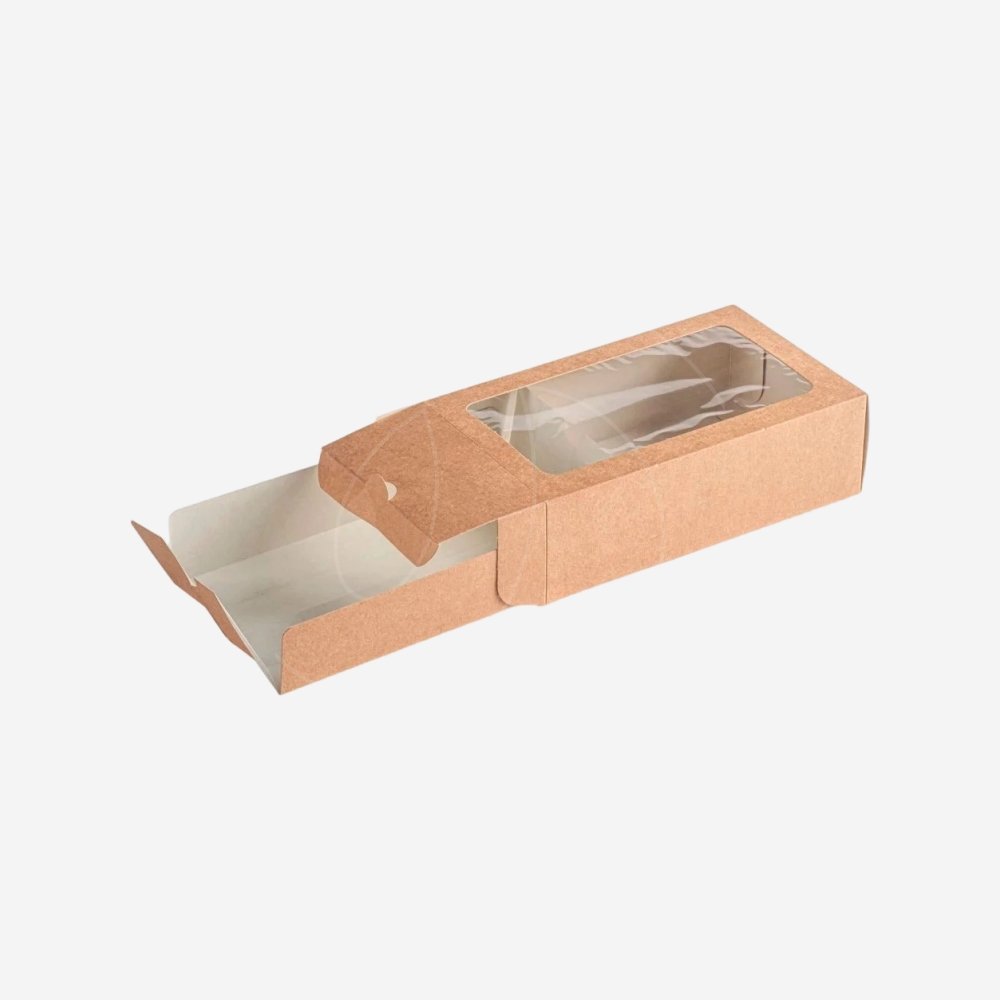 Картонный короб цвета крафт с окошечком для ваших вкусных Макарон!