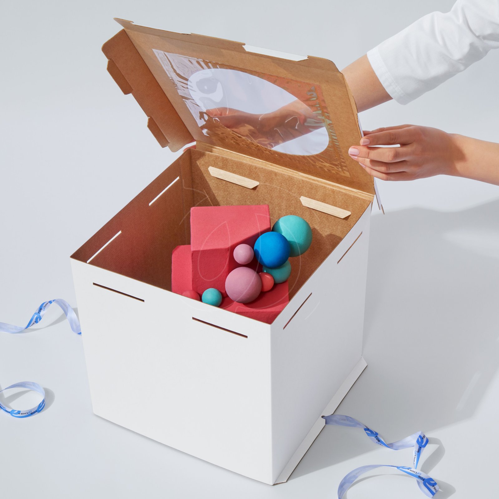 Большая коробка с окном подходит для хранения и транспортировки торта.