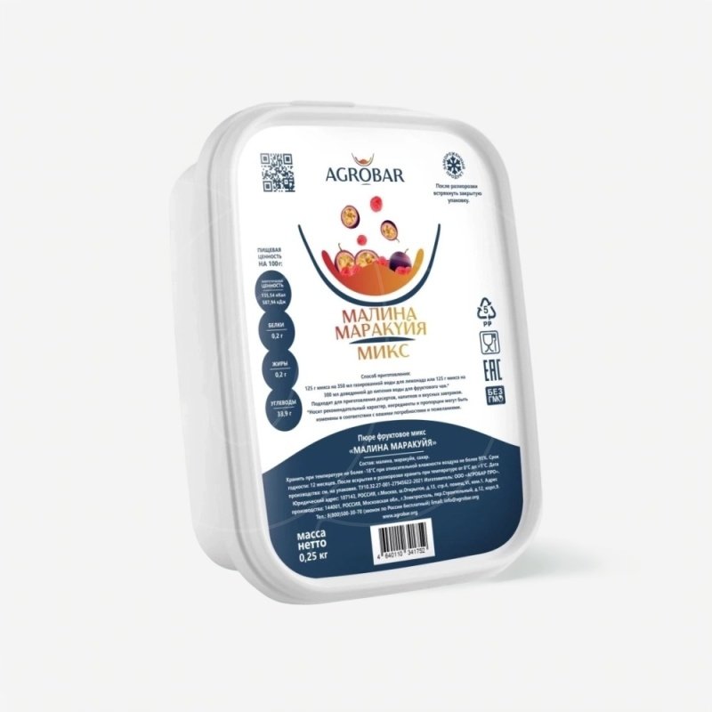 Доставка Пюре замороженное AGROBAR Малина-маракуйя микс 250 г из магазина в вашем городе: