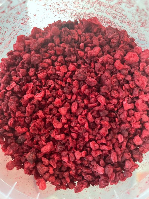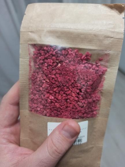 Чудесная малина! Люблю использовать для декора своих десертов вместо сахарной посыпки, украшаю макарон и шапочки капкейков красный бархат, очень красиво смотрится, а главное она приятная на вкус и запах! Фракция кусочков очень хорошая, не пудра, что еще один плюс этого ингредиента.