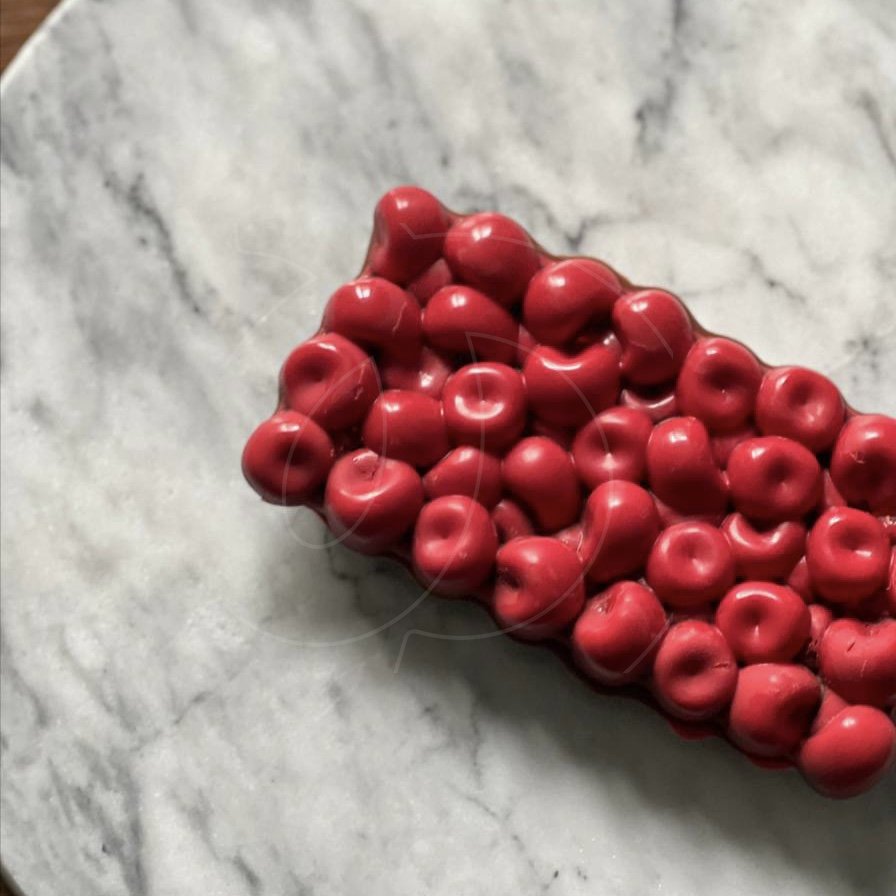 Форма выполнена в виде вишни. Добавьте красный краситель для большего сходства плитки с ягодами.
