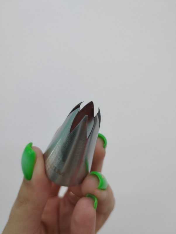Красивая насадка по приятной цене. Отсаживаю с её помощью зефир, шапочки на капкейки и крем в трайфлы. Напоминает чем-то насадку 2D, только зубчики более открыты, но это не делает её менее прекрасной.