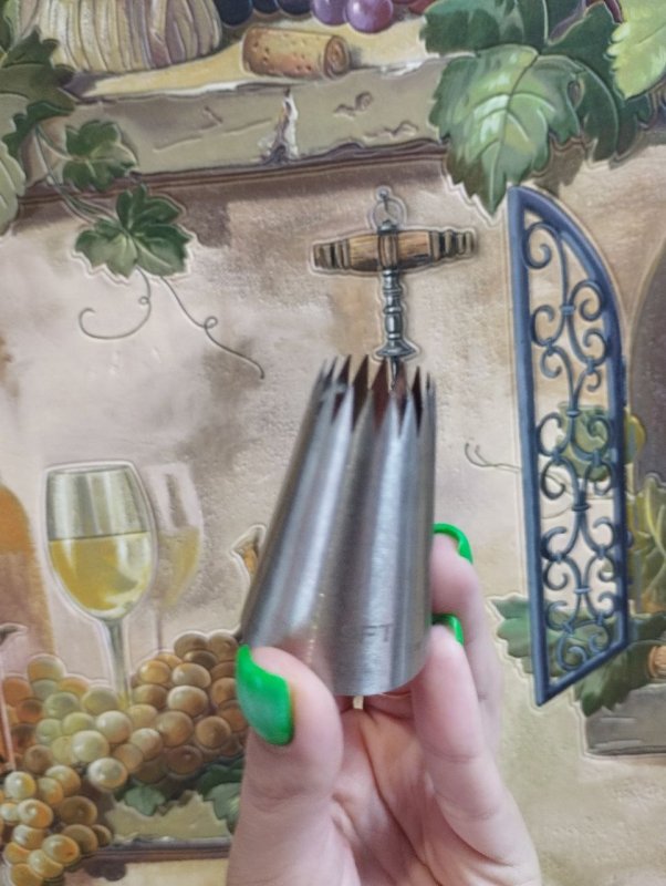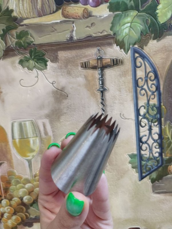 Хорошая насадка из качественного металла) Подходит не только для отсадки эклеров, но и для шапочек капкейков, смотриться необычно)