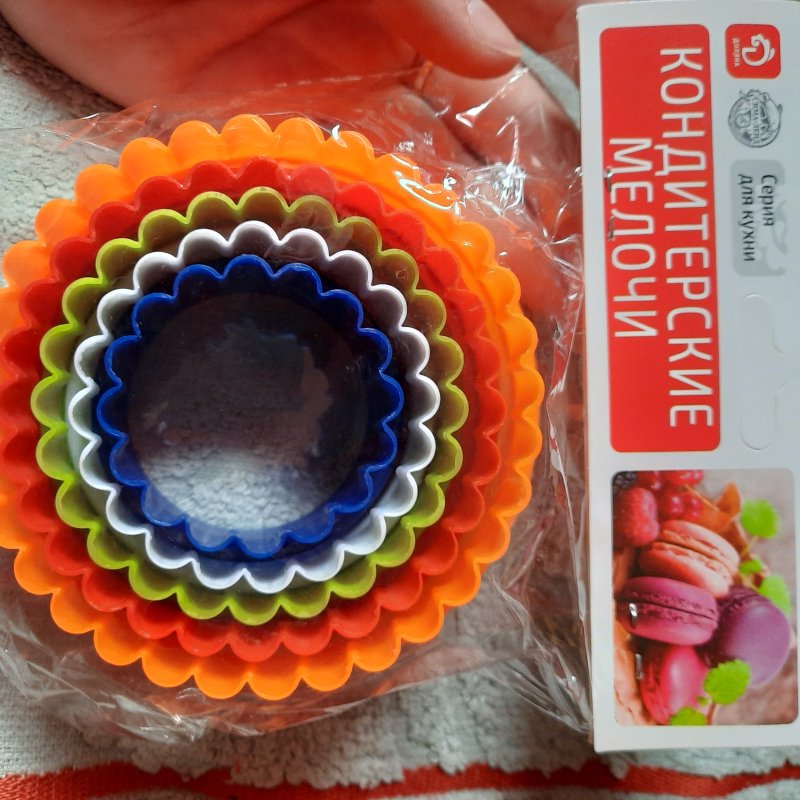 Отличные вырубки с одной стороны без рёбер с другой стороны ребра это значит что с такими формами можно и печенье делать и пряники и пончики и многое другое . И в упаковке разные 5ть шт ..