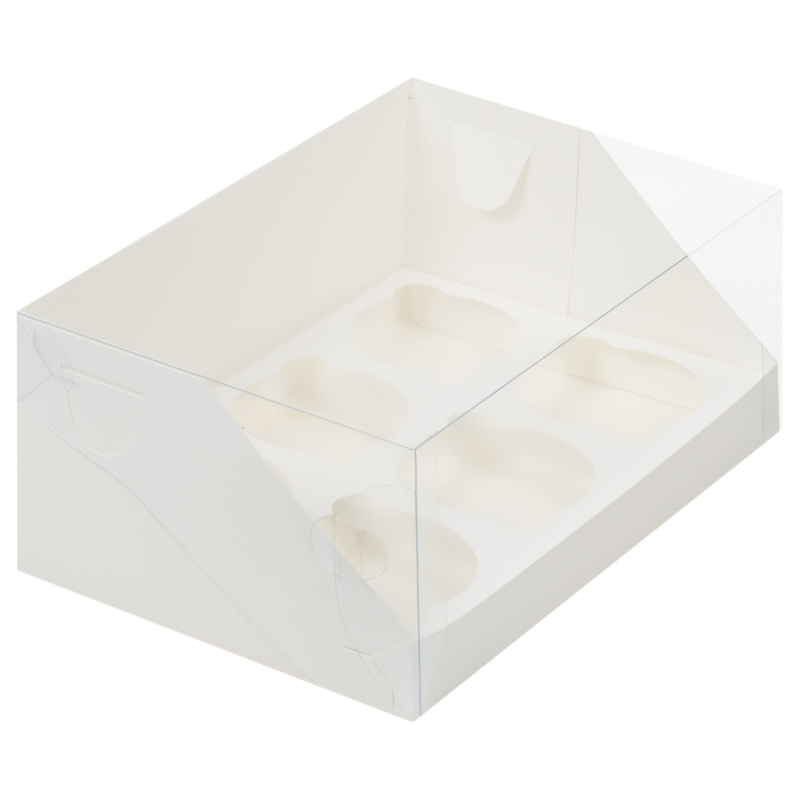 Доставка Коробка на 6 капкейков с прозрачной крышкой белая 50 шт из магазина в вашем городе: