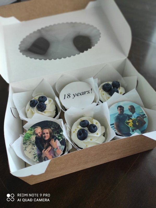 Рассчитана на 6 капкейков - коробка оснащена специальными отделениями под каждый капкейк.