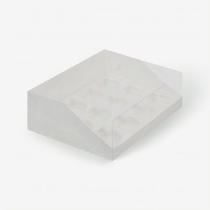 Коробка на 12 капкейков с прозрачной крышкой белая