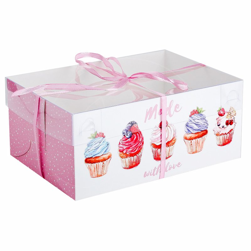 Доставка Коробка на 6 капкейков "Made with love" с окном из магазина в вашем городе: