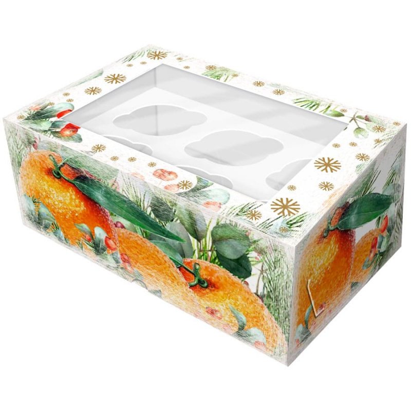 Доставка Коробка на 6 капкейков с окном "Апельсины" 25х17х10 см из магазина в вашем городе: