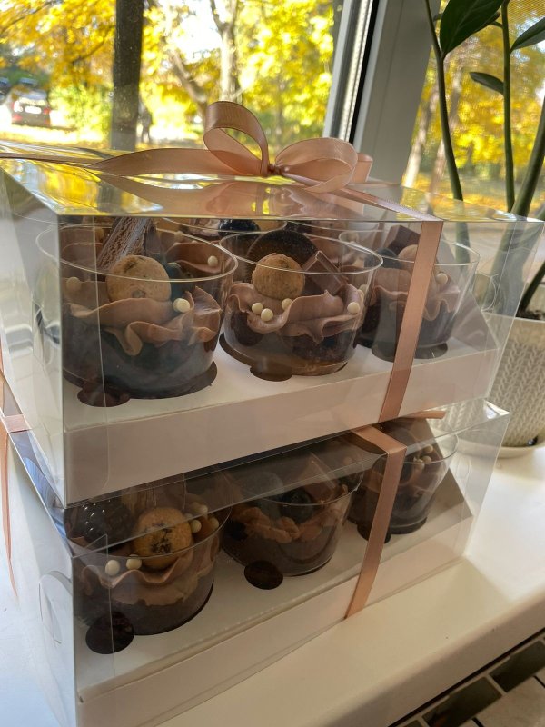 Коробка подойдет для капкейков, маффинов, пирожных или другого десерта.
