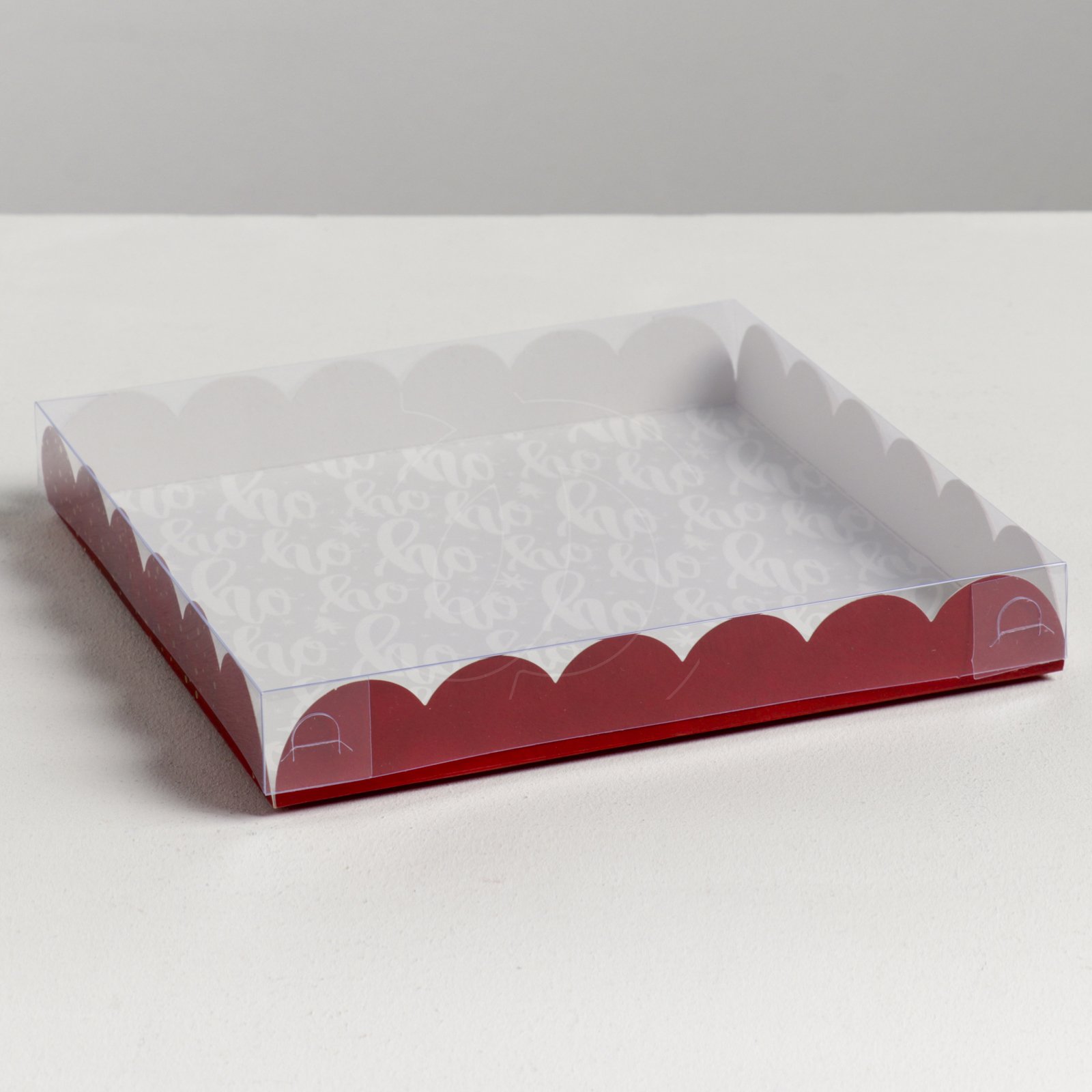 Коробка для сладостей с прозрачной крышкой "Hohoho" 21х21х3 см