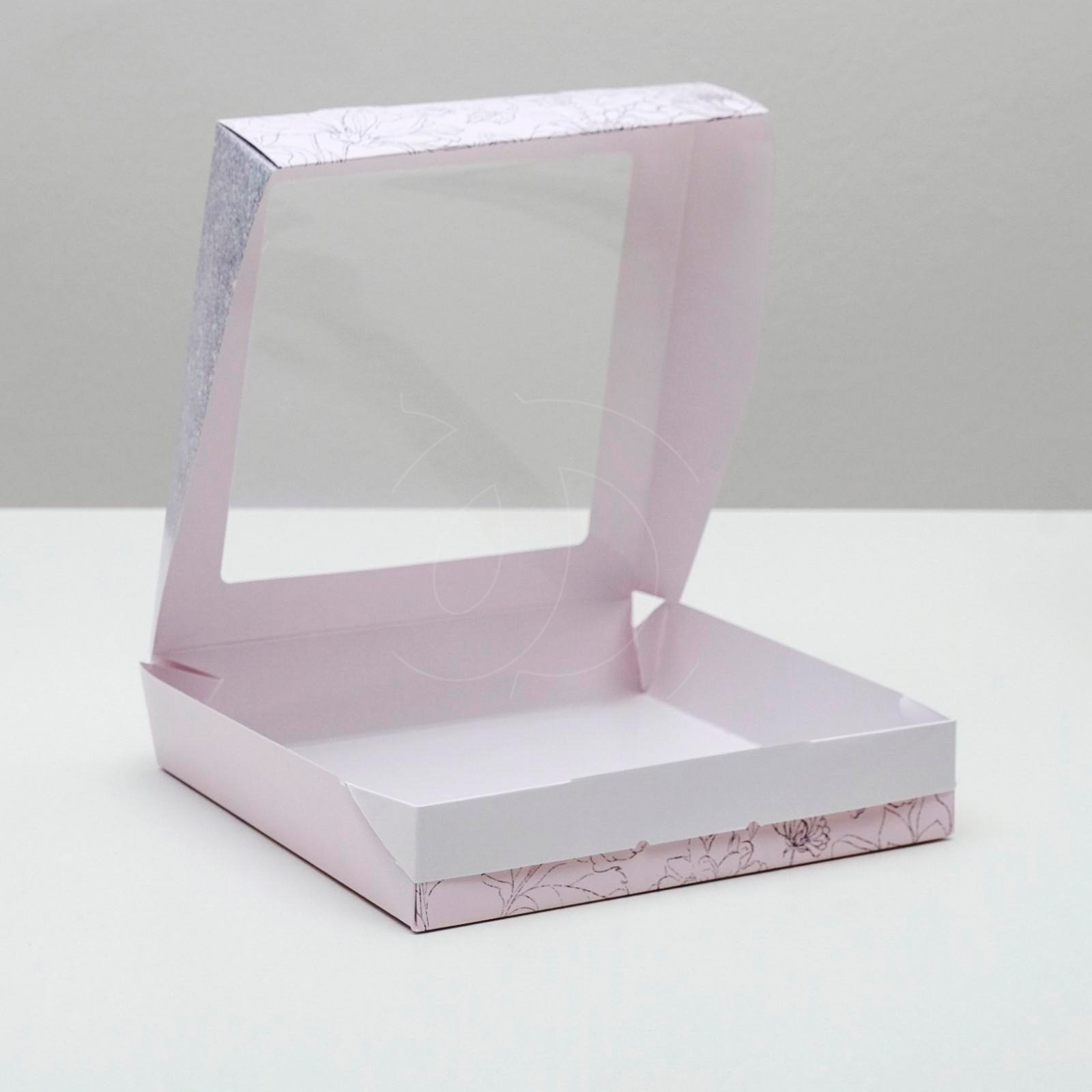Доставка Коробка для сладостей с окном "Цветы" 20х20х4 см из магазина в вашем городе: