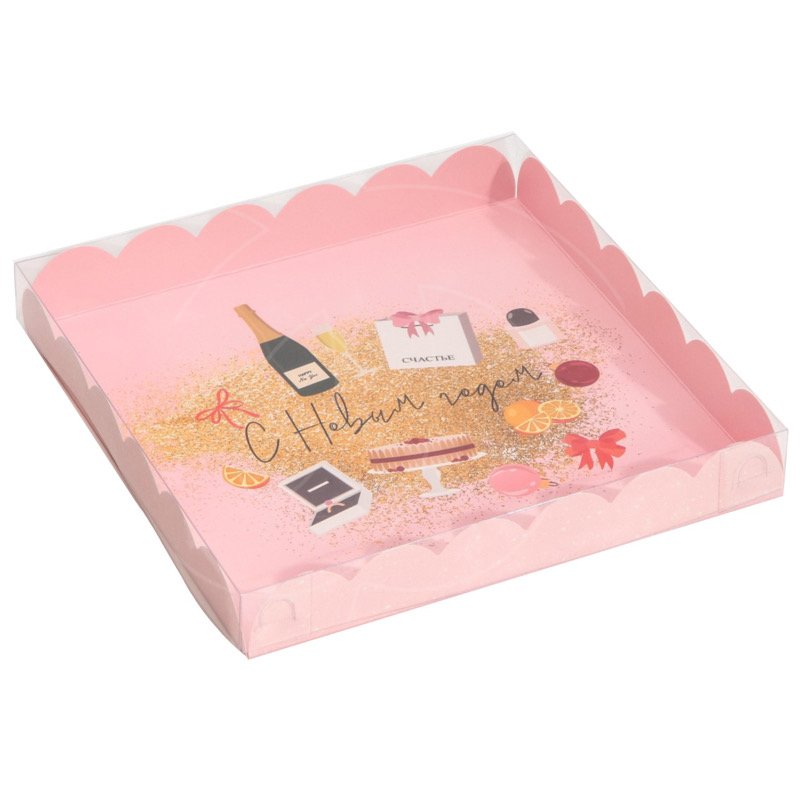 Доставка Коробка для сладостей с прозрачной крышкой "Новый Год!" 21х21х3 см из магазина в вашем городе: