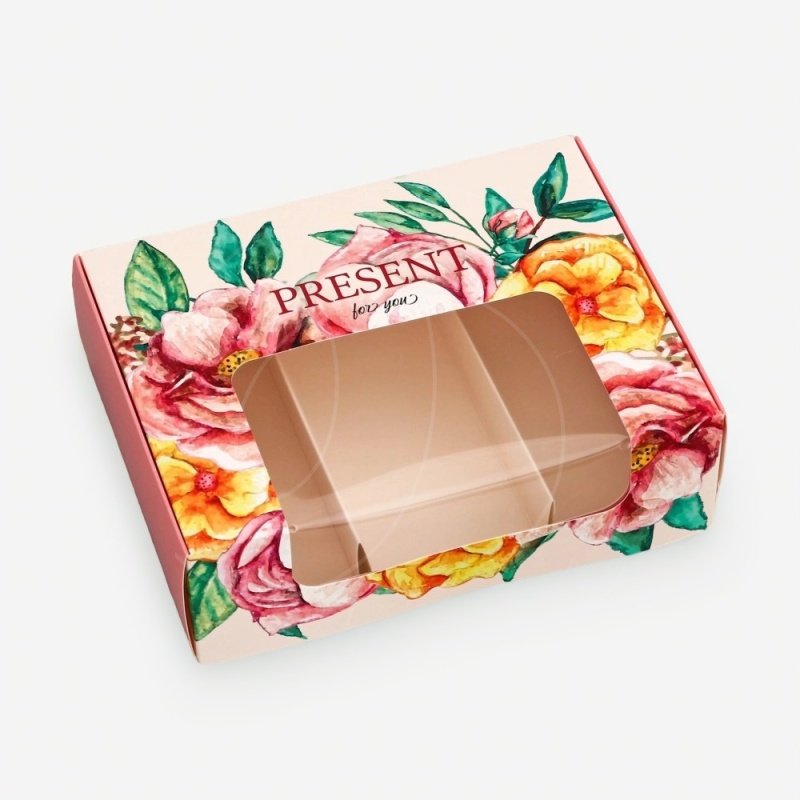 Коробка на 3 эклера и эскимо с окном "Подарок для тебя" 20х15х6 см