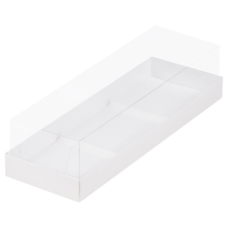 Доставка Коробка на 3 пирожных с прозрачной крышкой белая 29х9,5х8 см из магазина в вашем городе: