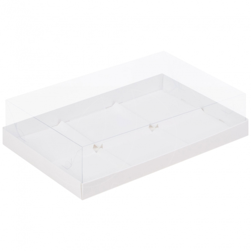 Доставка Коробка на 6 пирожных с прозрачной крышкой белая 30х19,5х8 см из магазина в вашем городе: