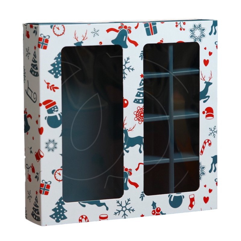 Доставка Коробка на 8 конфет и шоколадную плитку с окном "Новогодняя" 17,7х17,7х3,8 см из магазина в вашем городе: