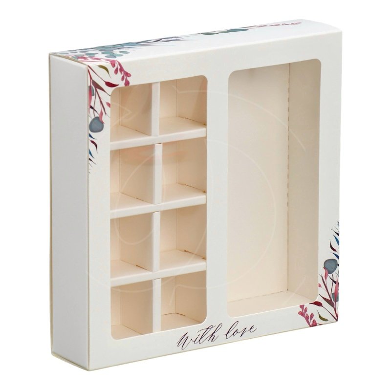 Доставка Коробка на 8 конфет и шоколадную плитку с окном "With Love" 18х18х4 см из магазина в вашем городе:
