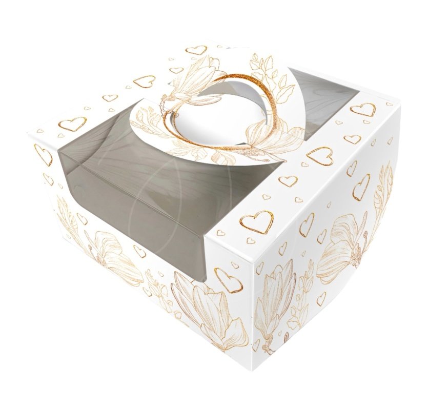 Доставка Коробка для бенто-торта с окном и ручкой "Золотые сердечки" 14х14х8 см из магазина в вашем городе: