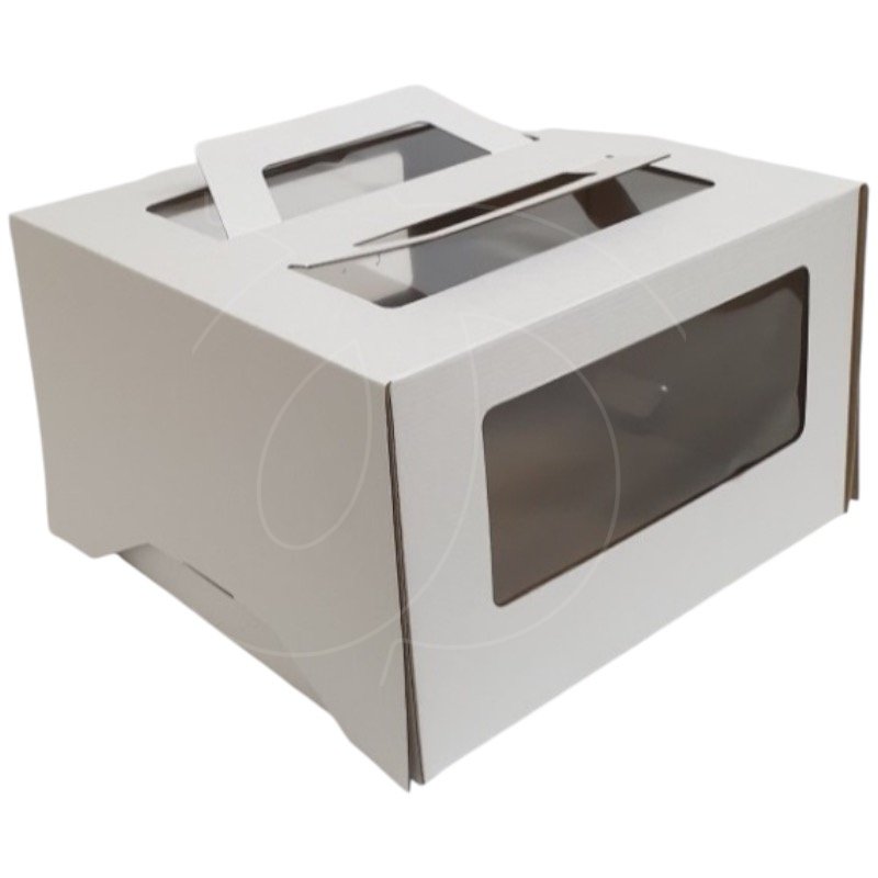 Доставка Коробка для торта с окном и ручками с ламинацией белая 26х26х20 см из магазина в вашем городе: