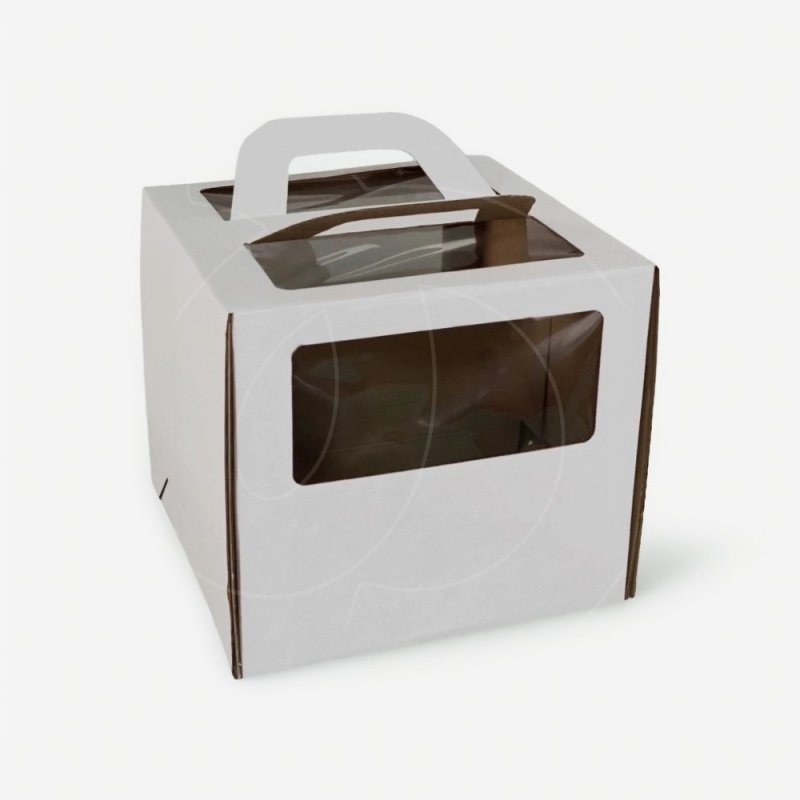 Доставка Коробка для торта с окном и ручкой белая 26х26х26 см из магазина в вашем городе: