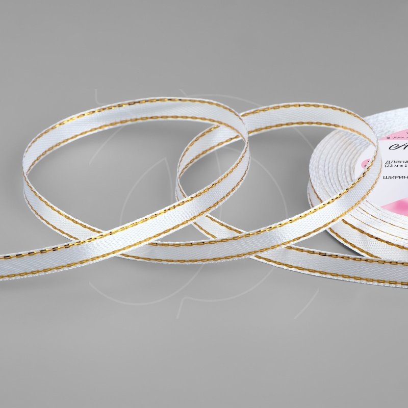 Доставка Лента для декора и упаковки Атласная Белая с золотом 6 мм из магазина в вашем городе: