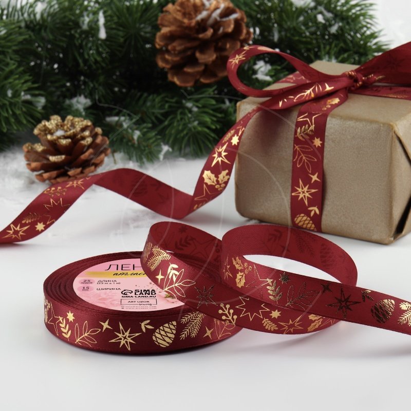 Доставка Лента для декора и упаковки "Рождественское чудо" Бордовая 1,5 см из магазина в вашем городе:
