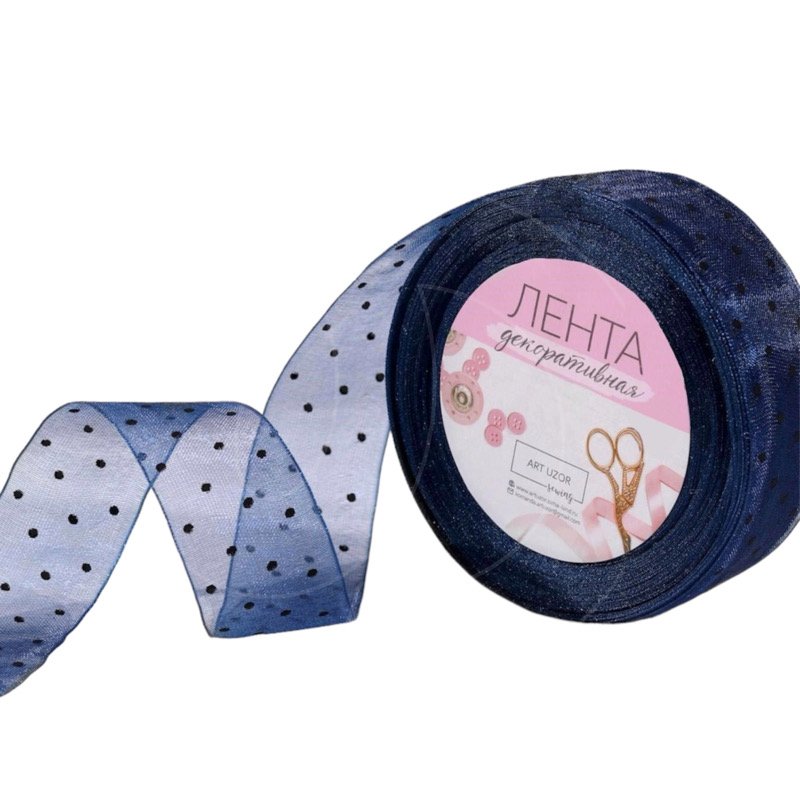 Доставка Лента для декора и упаковки Тёмно-синяя Горошек 2,5 см из магазина в вашем городе:
