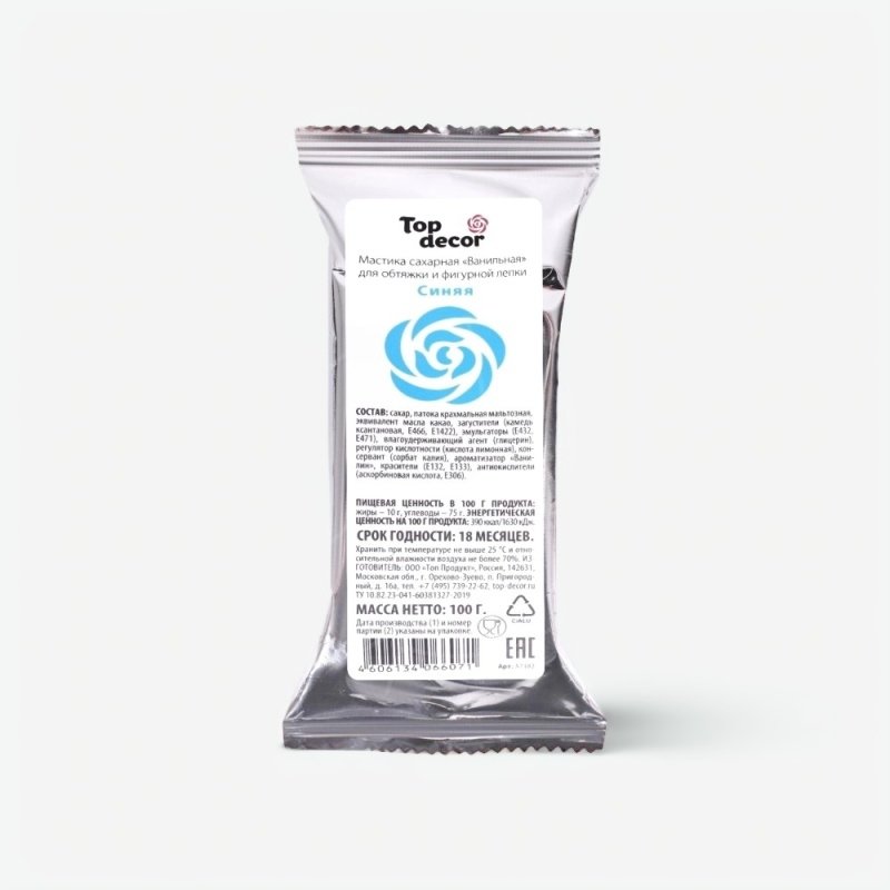 Доставка Мастика кондитерская ванильная Top Decor "Синяя" 100 г из магазина в вашем городе: