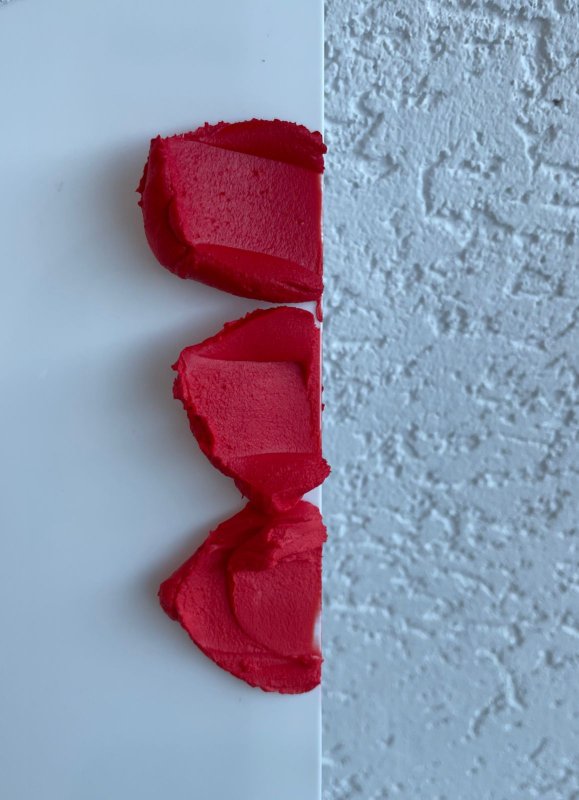 По консистенции немного гуще, чем остальные красители из этой линейки, поэтому не пугаемся, расходится в креме так же прекрасно, как и более жидкие. Очень выручил меня в сложный момент, не слышали о красителях такого? Так вот я вам расскажу... На предновогодние праздники красный самый востребованный цвет и естественно я закупилась сухими красными красителями другой фирмы, которые к слову, стоят в 3 раза дороже, чем этот малыш, думая, что у меня всё схвачено и одной проблемой меньше, но не всё так просто. При смешивании с кремом, глазурью или шоколадом получался кирпичный, бордовый, какой угодно, но только не ярко-красный. Чего не произошло при использовании красного от MIXIE, с первого раза получился идеальный красный, в который не нужно было добавлять чёрного, чтобы убрать розовый оттенок, был просто ярко-алый и всё, теперь это мой любимчик для всего красного))