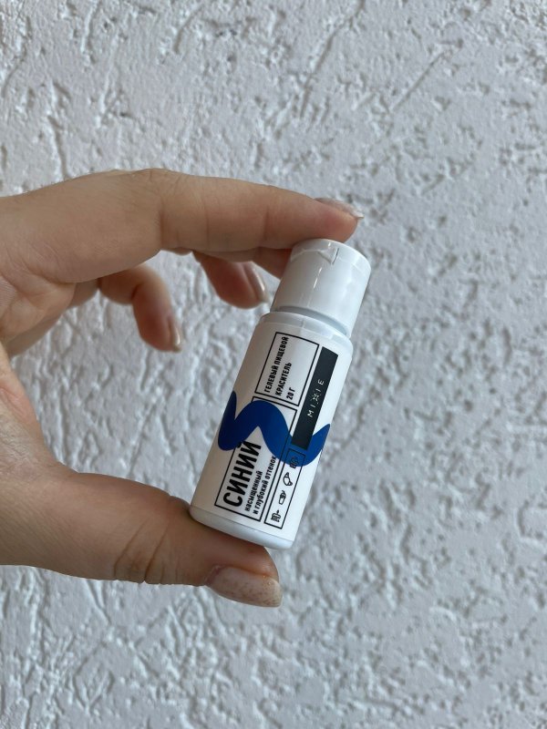 Цвет очень сложный (в целом, как и все яркие или тёмные цвета). Чтобы получить прям синий-синий, придётся добавить ну ооочень много красителя. Я окрашивала кремчиз всего на 80г сыра для выравнивания бенто тонким слоем и добавила 5 капель красителя, цвет всё равно получился лазурный, а не синий. Но решила больше не добавлять, потому что такие яркие цвета красят губы и язык. Но краситель сам по себе неплохой, быстро расходится в массе и равномерно окрашивает, вот только хотелось бы большей пигментации и яркости цвета, но на моём опыте ярких цветов, конечно, лучше добиваться сухими красителями (или ещё лучше смешивать сухой + пару-тройку капель гелевого, тогда вообще результат будет супер).