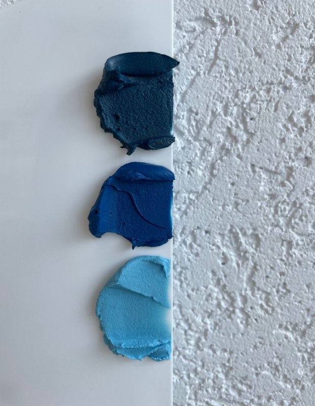 В малом количестве получился красивый небесный цвет. Если добавить больше капель - плотный темно синий цвет благородный Для голубых оттенков нужно прям на зубочистке добавить, очень концентрированные красители. Использовала в тесто для моти. Я в восторге от них!!