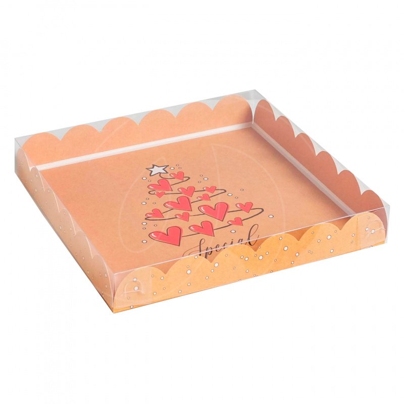 Доставка Коробка для печенья/конфет с прозрачной крышкой "Сердечки. Для тебя" 21х21х3 см из магазина в вашем городе: