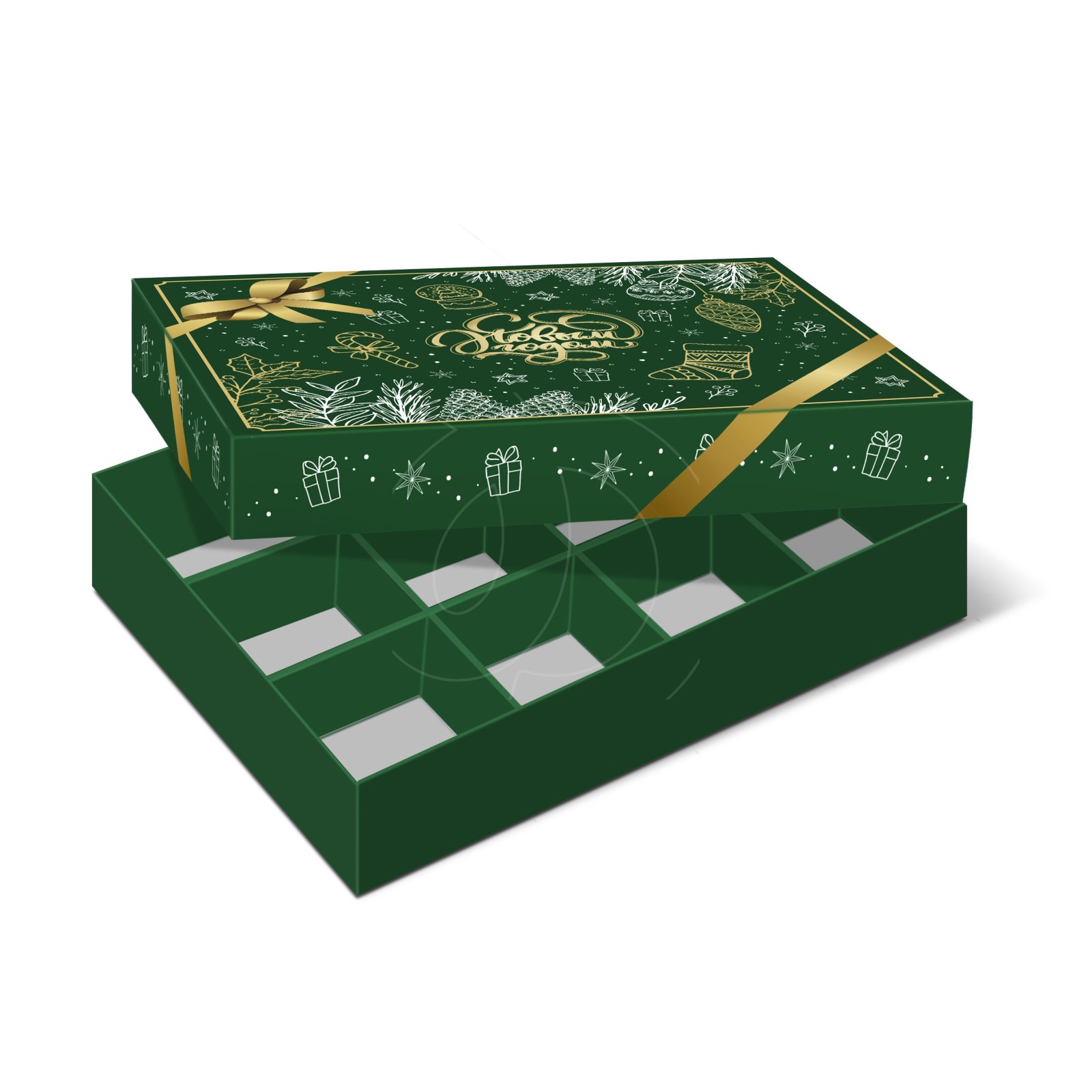 Коробка на 12 конфет "Изумрудный Новый Год"