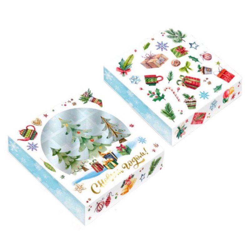 Доставка Коробка на 16 конфет с окном "Новогодние ёлочки" 17,7х17,7х3,8 см из магазина в вашем городе: