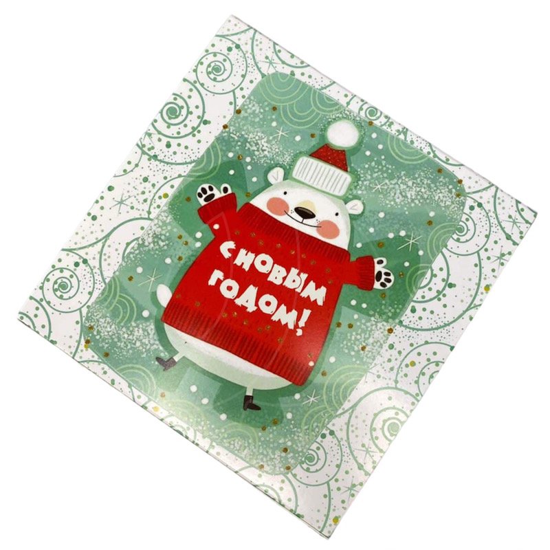 Доставка Коробка на 9 конфет с окном "Снежный Мишка" 13,8х13,8х3,5 см из магазина в вашем городе: