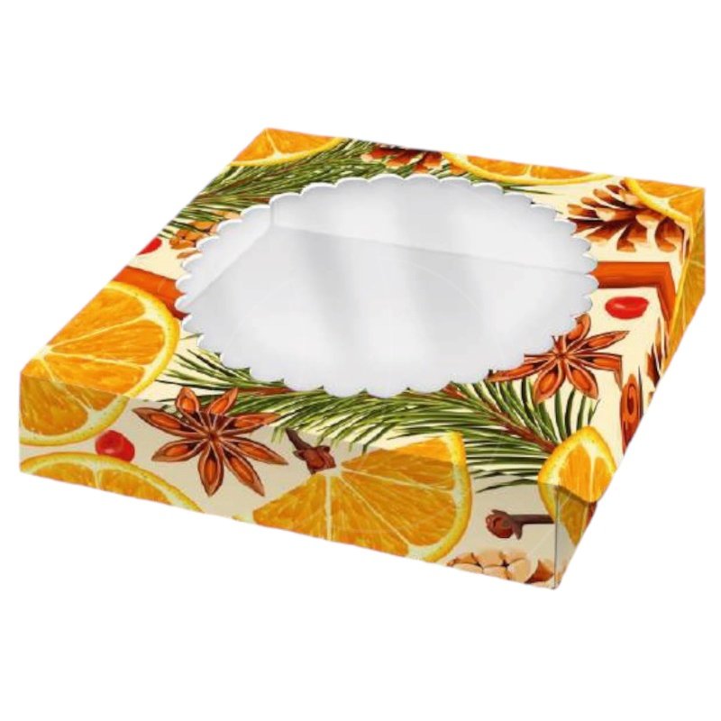 Доставка Коробка для сладостей с окном "Апельсины" 11,5х11,5х3 см из магазина в вашем городе: