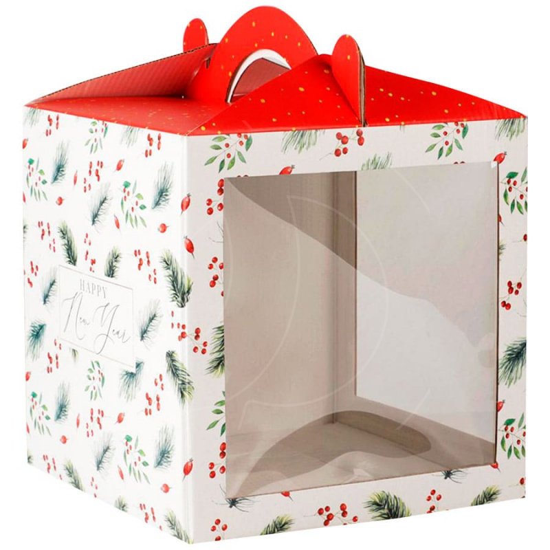 Доставка Коробка для торта с окном и ручкой "Happy New Year" 20х20х20 см из магазина в вашем городе: