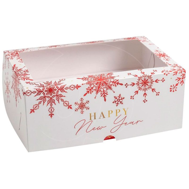 Доставка Коробка на 6 капкейков с прозрачным окном "Happy New Year" 25х17х10 см из магазина в вашем городе: