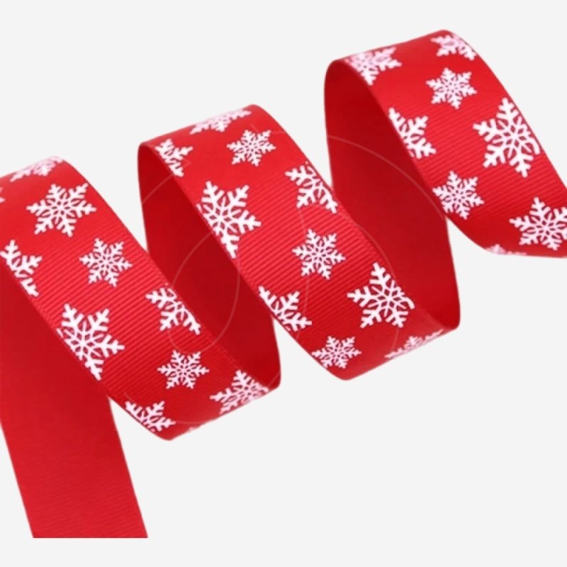 Доставка Лента для декора и упаковки Атласная "Снежинки" Красная 2,5 см из магазина в вашем городе: