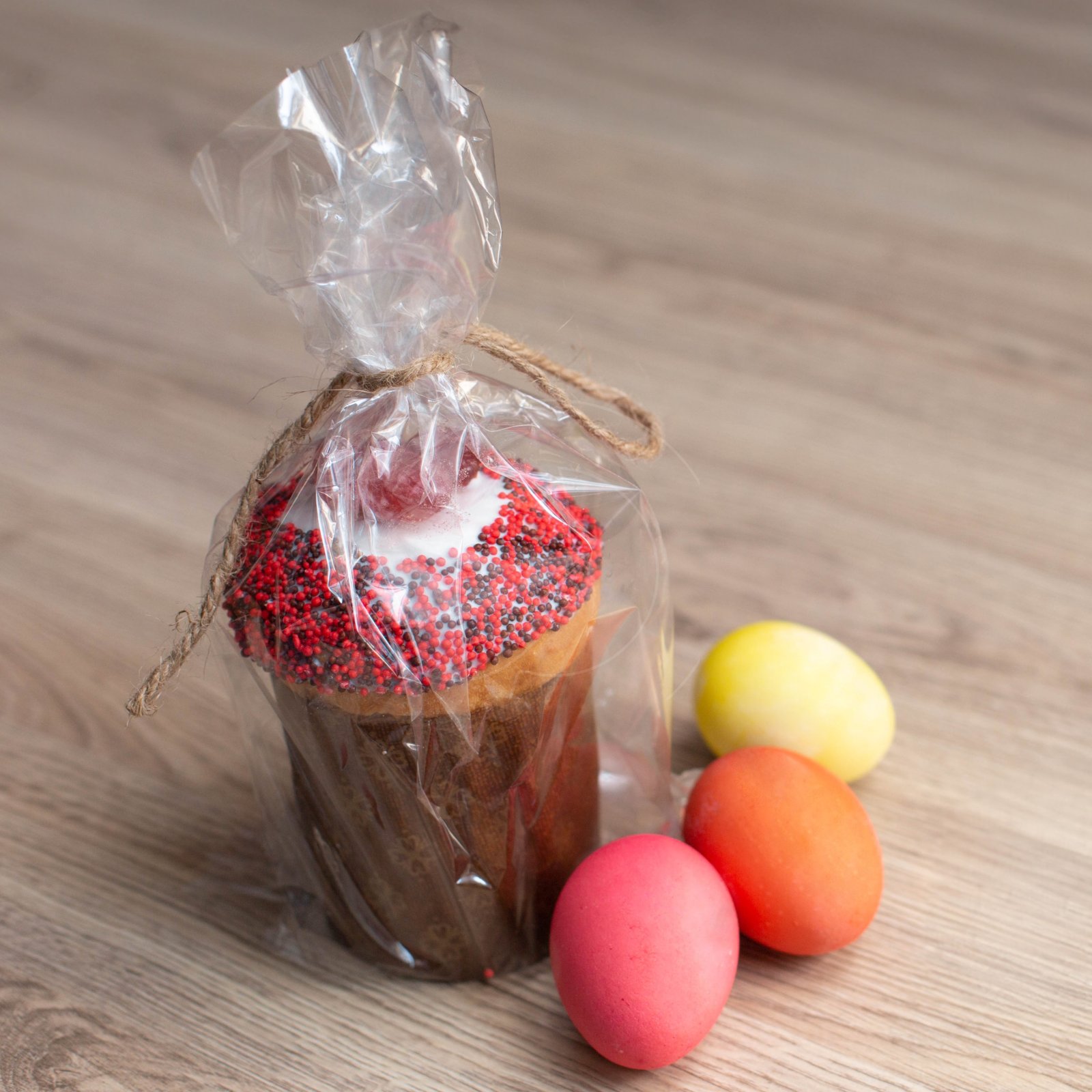 Завершите оформление вашего праздничного кулича прозрачной упаковкой, которая продлит срок годности изделия.