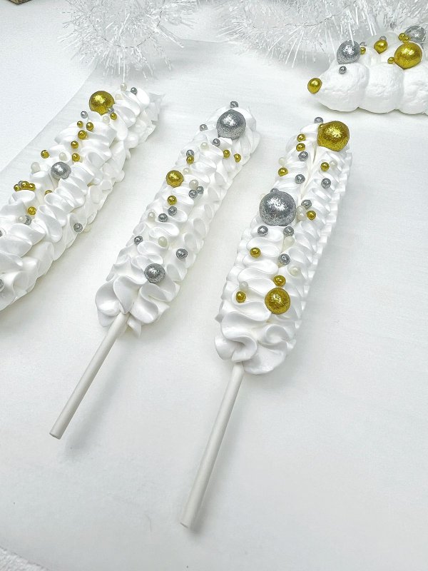 Последние пару лет пользуюсь только такими! Идеальная длина, белый подходит ко всему, они плотные. Чудесно подходят для безе, маршмеллоу-мордашек, мармелада на палочках, леденцов и т.д. Я в основном делаю безе и мордашки. Не ломаю голову над цветами, потому эти палочки всегда смотрятся аккуратно