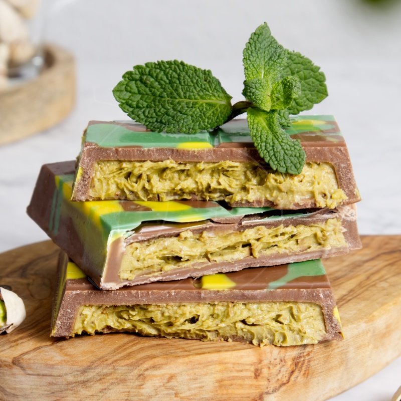 | Состав | фисташковая паста обжаренная, белый шоколад(сазар, какао-масло,сухое цельное молоко, эмульгатор соевый лецитин, ароматизатор ванилин), тесто |