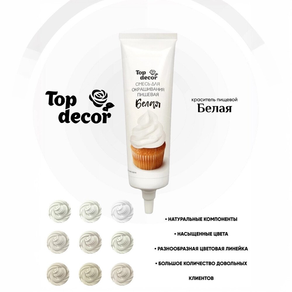Доставка Краситель пищевой гелевый водорастворимый Top Decor "Белый" 100 г из магазина в вашем городе:
